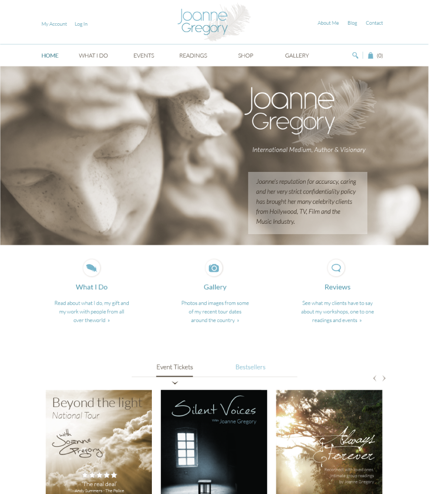 Joanne Gregory is a gifted medium and author. This project involved the full rebranding and ecommerce website design.